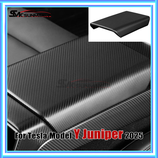 Carbon Fiber Armrest Box Panel Frame Cover for Tesla Model Y Juniper (2025)