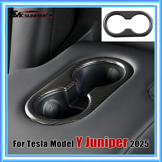 Carbon Fiber Rear Seat Cup Holder Panel Cover for Tesla Model Y Juniper (2025)