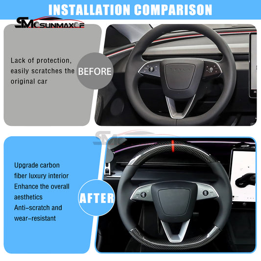 Real Carbon Fiber Steering Wheel Cover Trim for Tesla Model Y Juniper (2025)