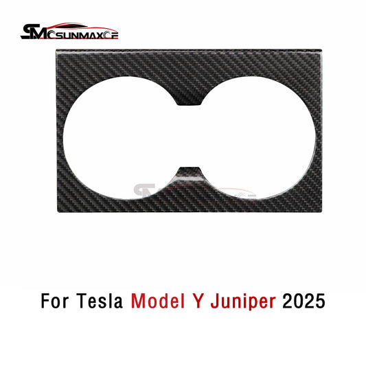 Real Carbon Fiber Front Cup Holder Panel Cover for Tesla Model Y Juniper (2025)