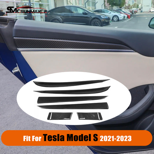 Tesla Model S 2021-2024 Real Carbon Fiber Door Trim & A-Pillar Covers (6PCS)