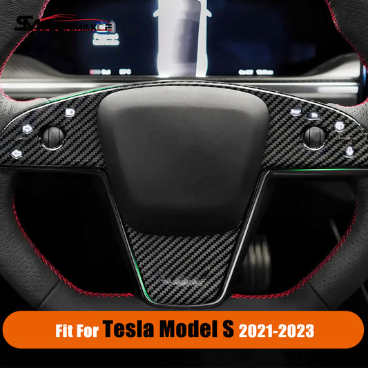 Tesla Model S/X 2021-2023 Real Carbon Fiber Steering Wheel Panel Cover Trim